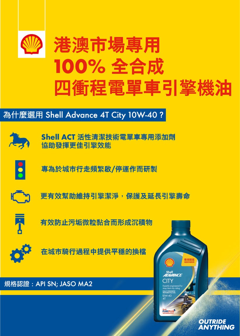 Shell Advance 4T City 10w-40 全合成四衝程電單車引擎機油/潤滑油/偈油 (1公升/L)