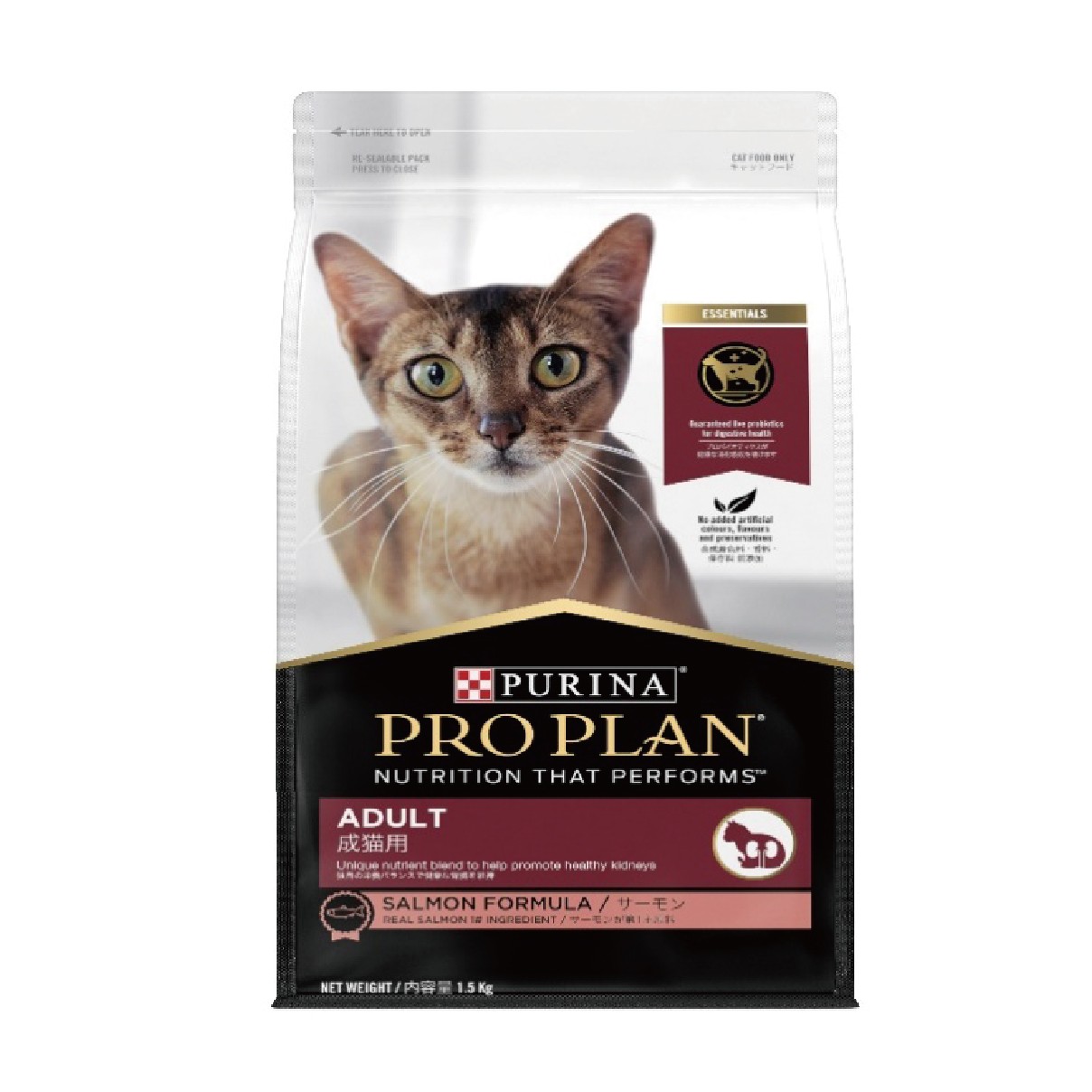 PRO PLAN® 成貓配方﹙三文魚﹚包含所有重要營養素,如維他命A、C及E,並加入奧米加3及6脂肪酸,獨特營養配方,幫助促進腎臟健康,為貓咪帶來高品質的健康飲食。