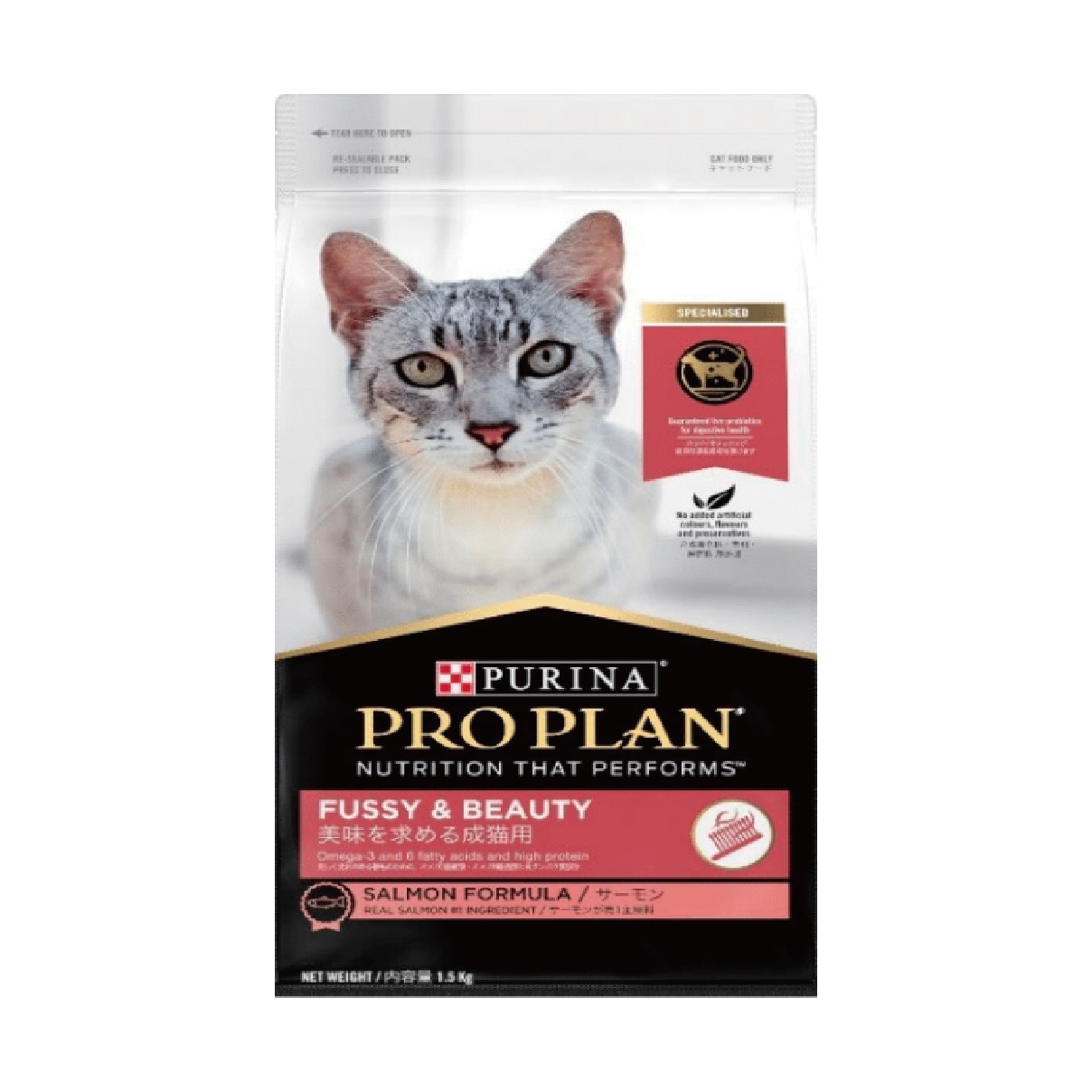 PRO PLAN® 成貓美毛亮麗配方(三文魚)包含奧米加3、6脂肪酸及高蛋白質配方,有助維持美麗、柔順而有光澤的毛髮,以及天然益生菌,,支援消化及免疫健康,為貓咪帶來高品質健康飲食。