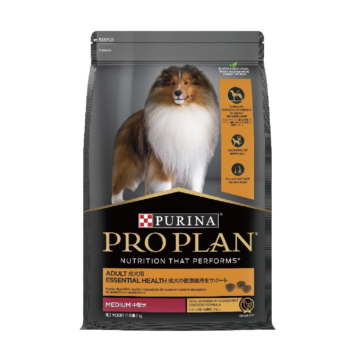 PURINA® PRO PLAN®中型成犬配方 嚴選優質雞肉製成,配方並加入活性益生菌,促進狗狗腸道健康。