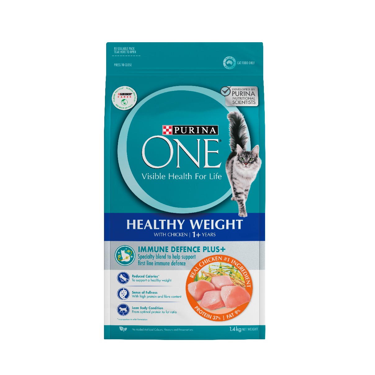 PURINA ONE® 貓乾糧成貓體重管理配方專門協助易胖體質的貓咪保持健康體格。配方同時含有維生素C 和E、奧美加3和6 以及β-葡聚醣,以協助您的貓由內到外擁有自然防禦。