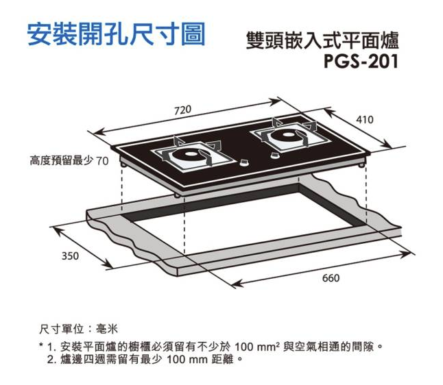 開孔尺寸:660闊(W) x 350深(D) 毫米(mm)