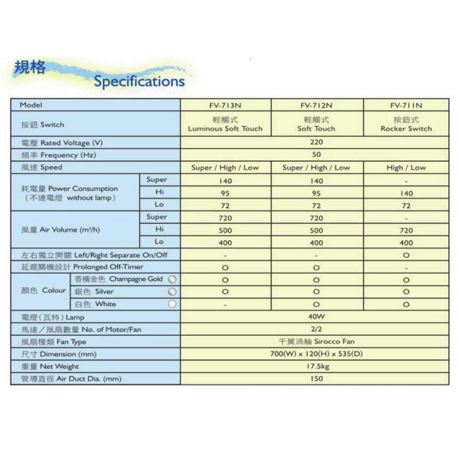 風量:高H 720、低L 400 m³/h 每小時立方米