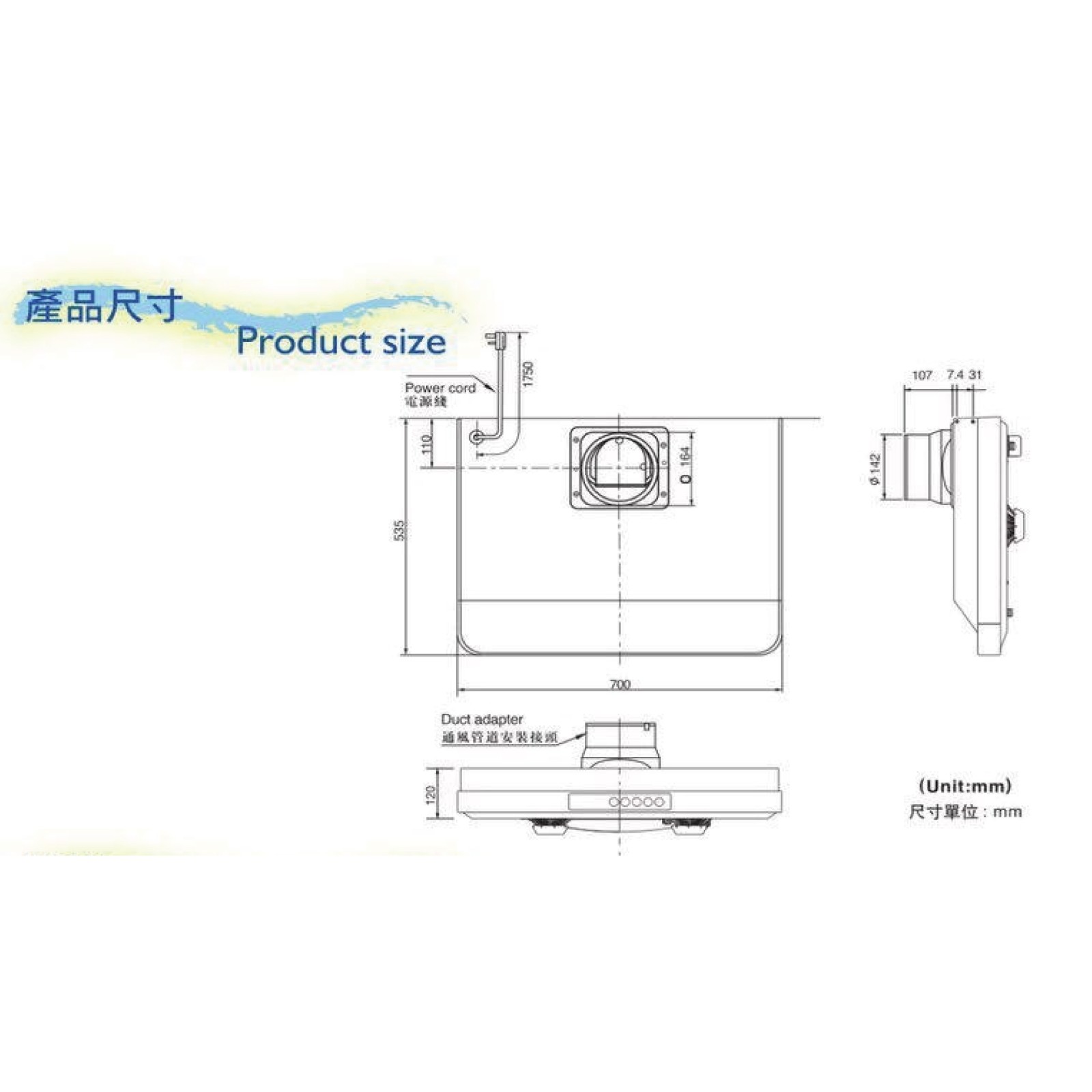 呎吋:700闊(W) × 535深(D)× 120高(H)mm